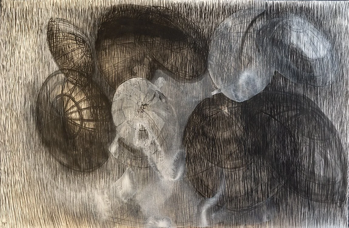 Evaporation 1, Ink and Gouache on Washi, 21" x 33", 2023