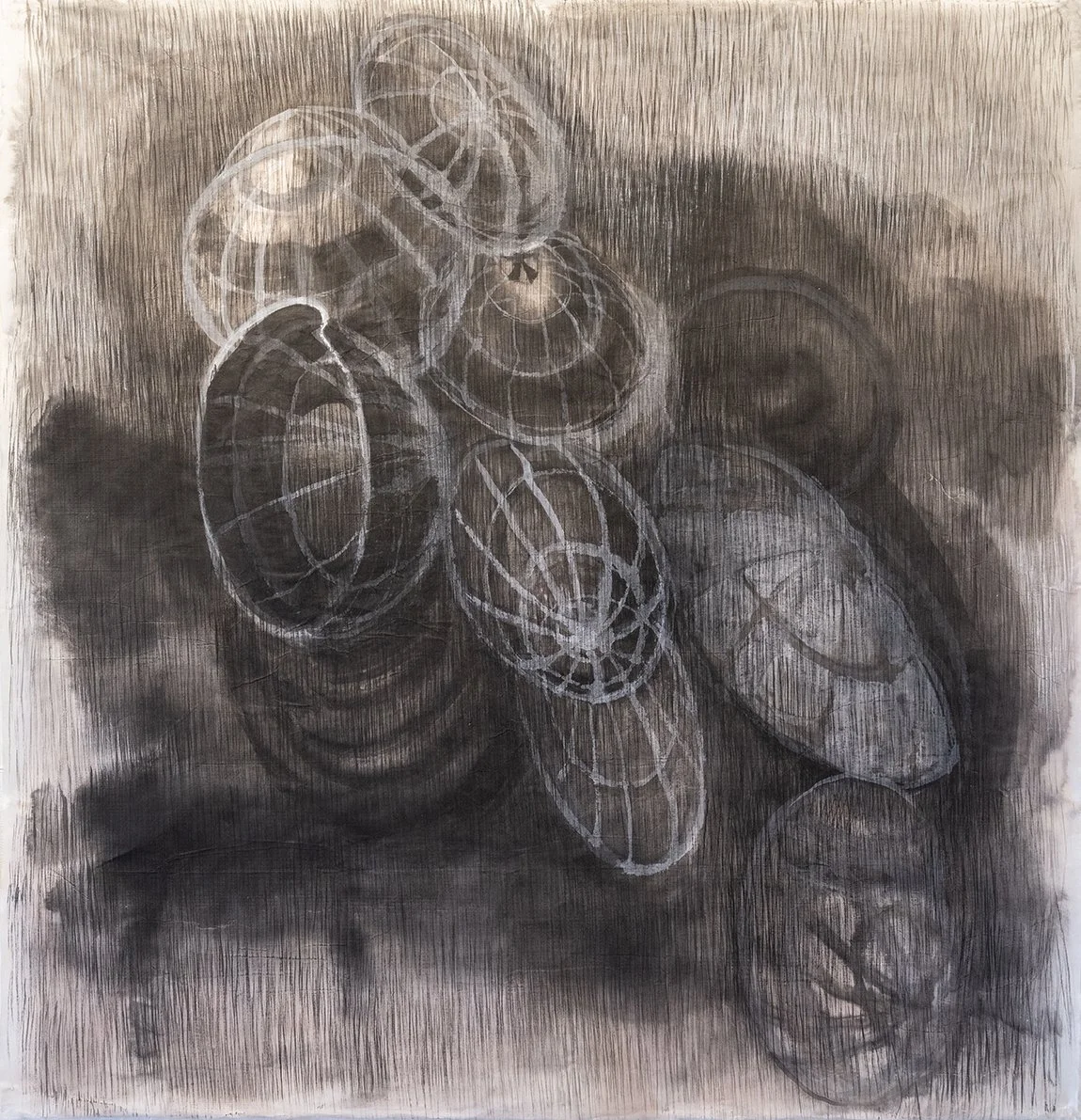 Tactic 3, Ink, Gouache, Washi Paper, 38" x 40", 2022